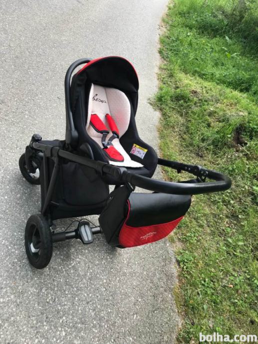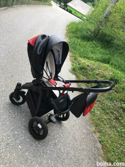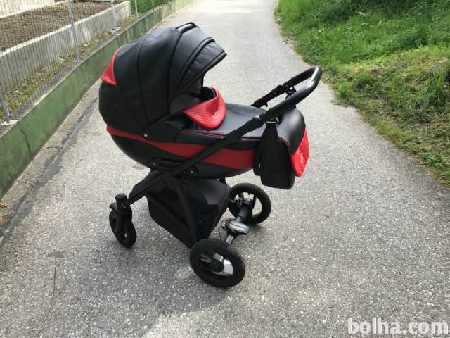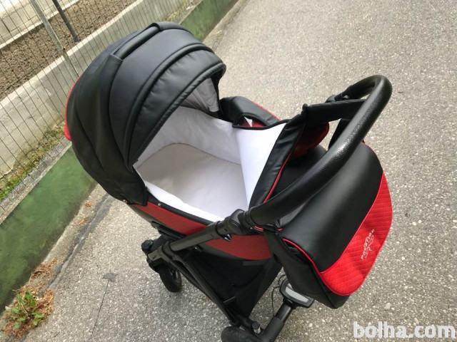 Prodaja se otroški voziček z vsemi dodatki (isofix baza za avto, dežna prevleka, komarnik). Voziček je iz eko usnja in je izvrsten za vzdrževanje. Ogled možen v Zagorju ob Savi