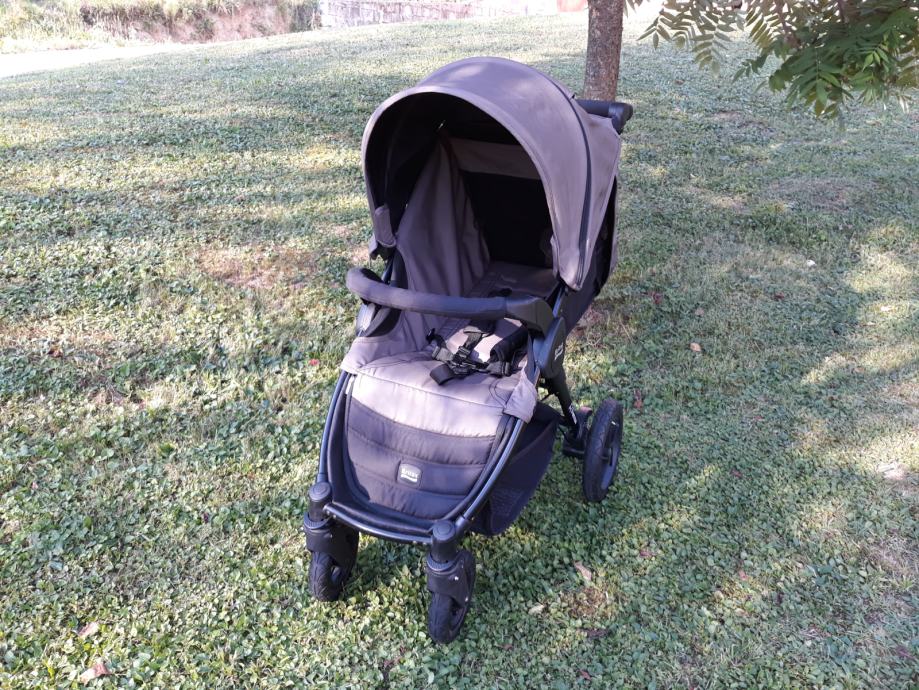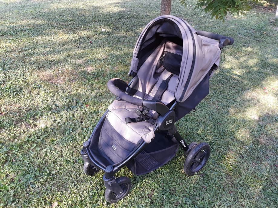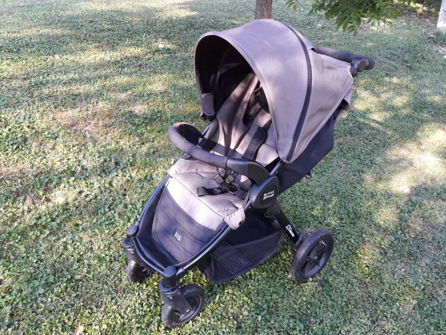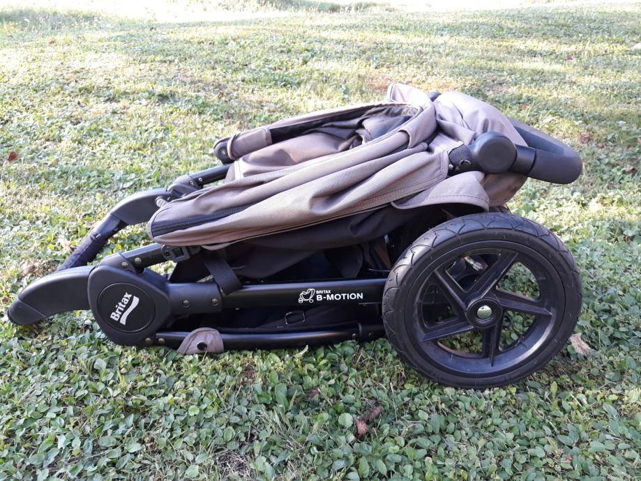 Lahek in udoben športni voziček B-Motion 4 priznane blagovne znamke Britax Romer. Voziček je hitro zložljiv in zavzame v prtljažniku malo prostora. Ima velika kolesa z zračnicami, tako da je vozen po vsakem terenu. Zaradi štirih koles je zelo stabilen, kolesa so vrtljiva v vse smeri. Uporabljali smo ga zelo kratek čas samo za enega otroka, tako da je praktično nov. Na ogrodje vozička je mogoče pritrditi avtosedež lupinico Britax Romer.