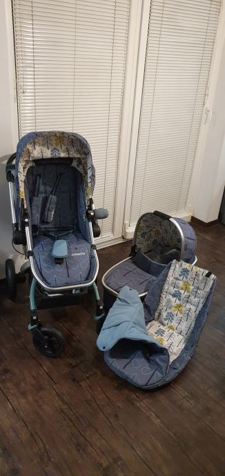 Voziček prodamo s košaro in športnim delom, dežni prevleki za vsak del posebej, torbo in zimsko vrečo. Uporabljen pri enem otroku.