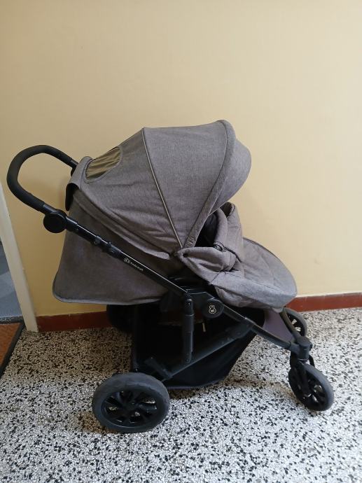 Športni del je mogoče obračat spredaj zadaj. Nastavljivo naslonjalo in opora za noge. Ročaj nastavljiv po višini.