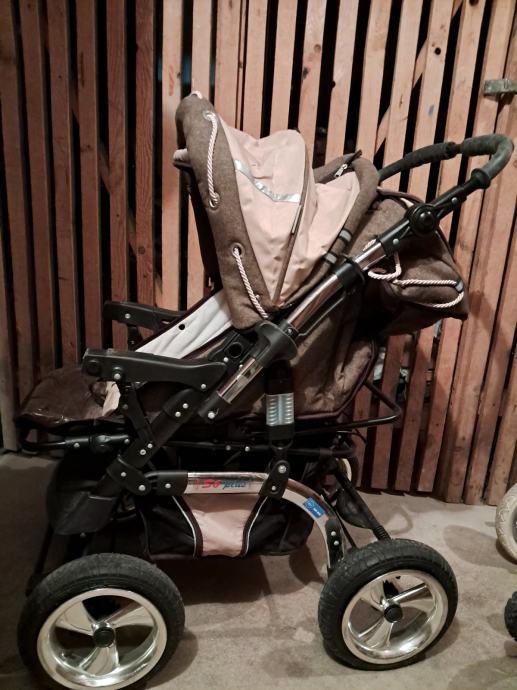 Prodam otroški voziček 3v1, rjave barve, zelo dobro ohranjen. Zraven pride lupinica in košara. Ima napihljiva kolesa, zelo stabilen in udoben za otroka.