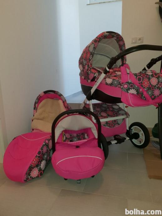 Zelo lepo ohranjen voziček,skoraj kot nov.Globoka košara,športni del,sedež za v avto,pregrinjalo za športni del,zimska vreča,folija za zaščito pred padavinami,mreža za zaščito pred komarji,praktična torba,dodatna zračnica.Tel.:031 518 194
