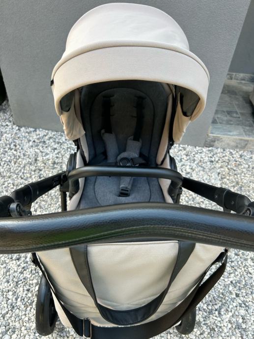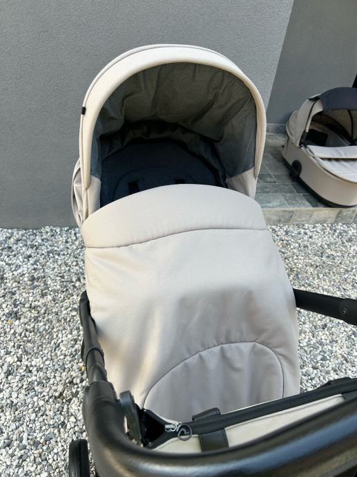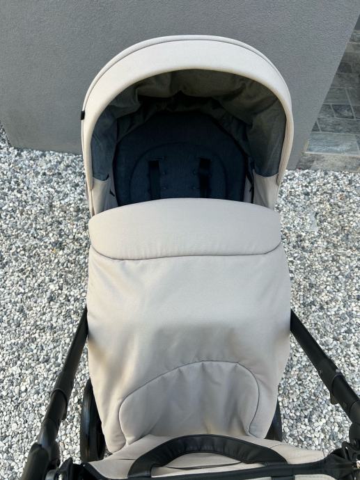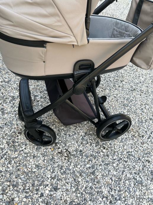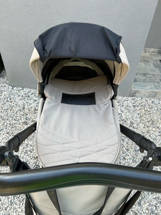 Voziček je bil v uporabi eno leto. Voziček je bil v celoti temeljito očiščen in je sestavljen iz dveh delov: globoke košare; 0-6 mesecev, ter športnega dela; 6 mesecev - 22 kg. Vožnja vozička je zaradi velikosti koles primerna za vso podlago. Možnost prevzema na relaciji zgornja Gorenjska - Ljubljana.