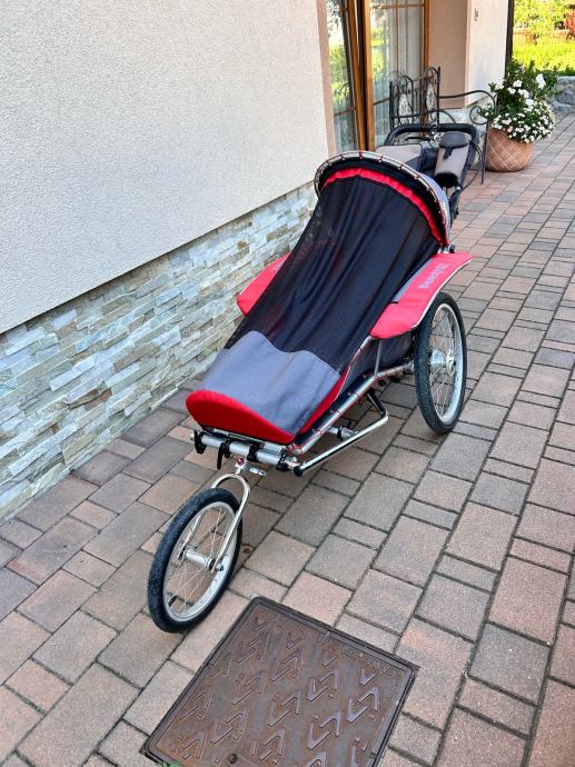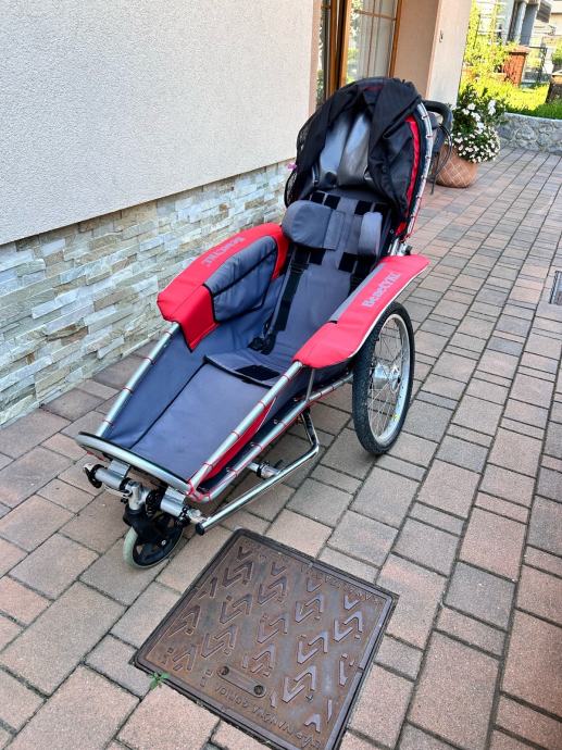 Prodamo športni voziček za otroka invalida ki je primeren tudi za zdrave otroke. Voziček je izredno lahek in prilagodljiv. Voziček ima na voljo mestno prednjo kolo, prednjo tekaško kolo ali možnost priklopa na kolo. Voziček ima tudi komarčnik in dežno prevleko. Nosilnost vozička je 60kg. Pri samem vozičku se da kolesa odstranit da pridobite čim več prostora v avtu, kolesa se odstranijo v minuti. Če se odločite za zimski šport lahko pri podjetju Benecykl dokupite tudi sanke ki se montirajo na kolesa. Voziček je primeren tudi za v lažje dostopne hribe(Uskovnica, Velika Planina , Śnarna Gora….. Prevzem vozička v Iv. gorici ali Ljubljani. Cena takega novega vozička znaša med 3.500€ do 3.800€, zato kličite samo resni.