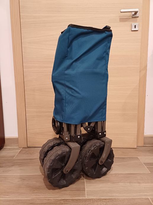 Transportni zložljivi voziček za na plažo s širokimi PVC kolesi.