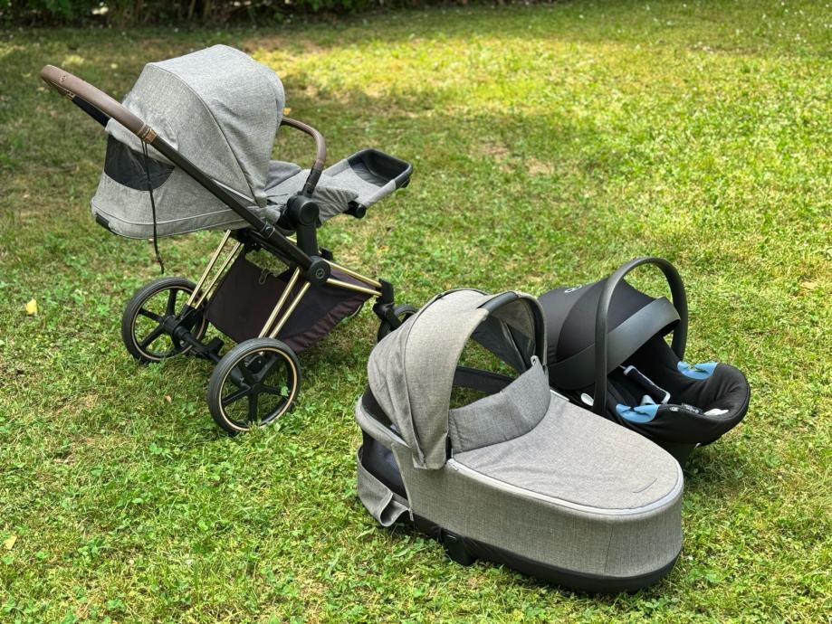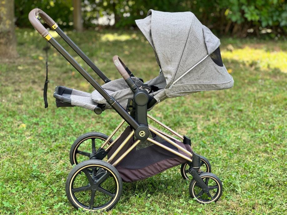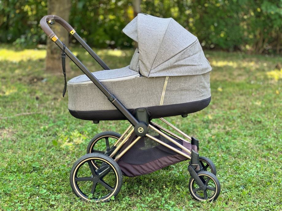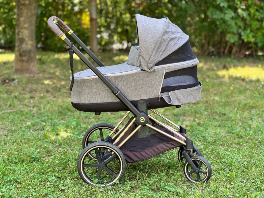 Prodam dobro ohranjen voziček Cybex Priam Platinum z rose gold ogrodjem, košaro in športnim delom barve manhattan grey plus mid grey