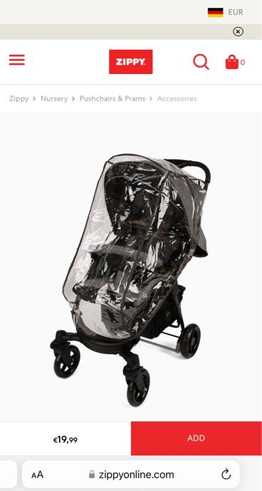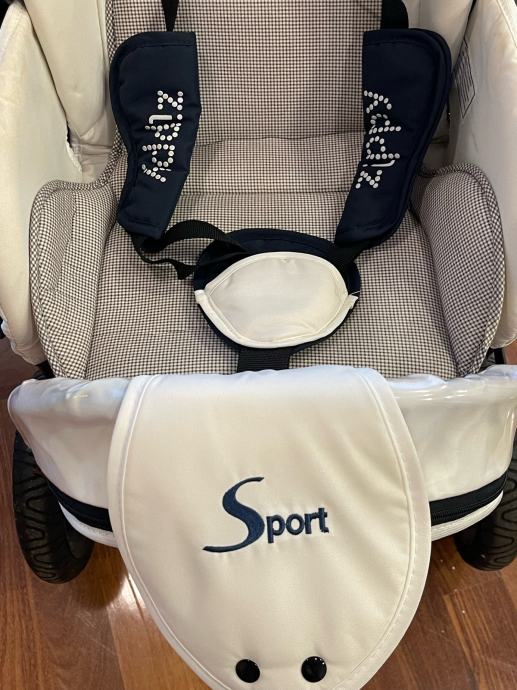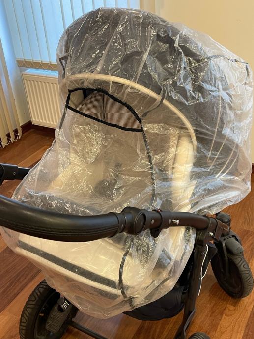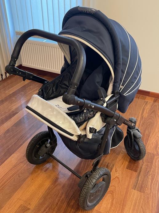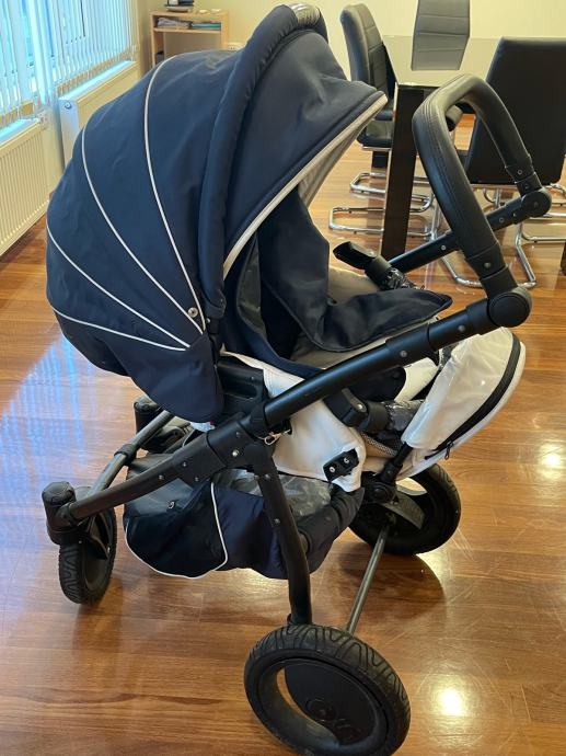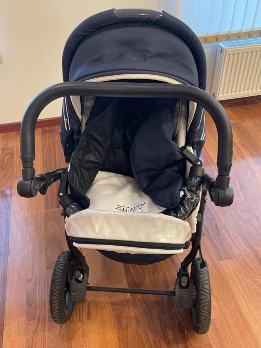 Dark blue and white baby stroller, Tutis Zippy. All the accessories are included: backpack, rain cover, mosquito net, etc.