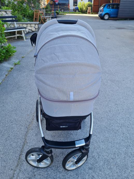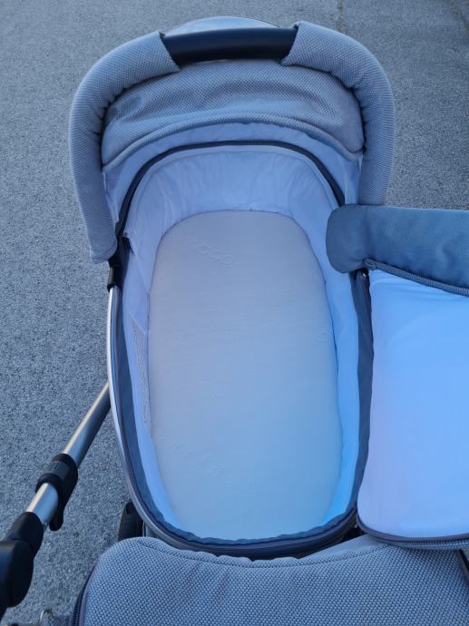 Prodam voziček, rabljen pri enem otroku. Zraven spada še dežna prevleka, previjalna podloga, torbica, zimska vreča.