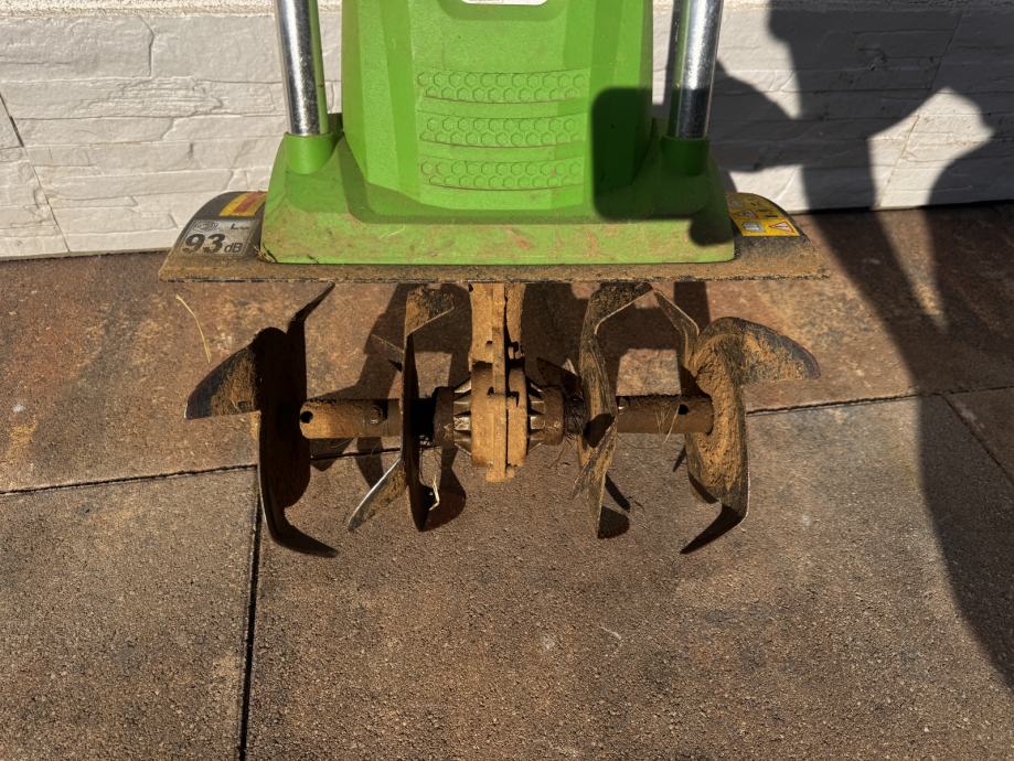 Električni kultivator za obračanje zemlje na vrtu.