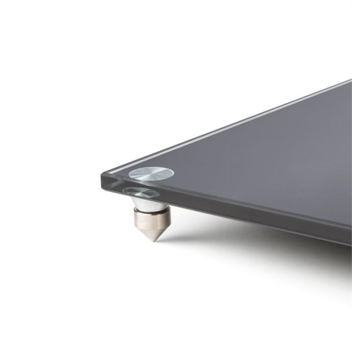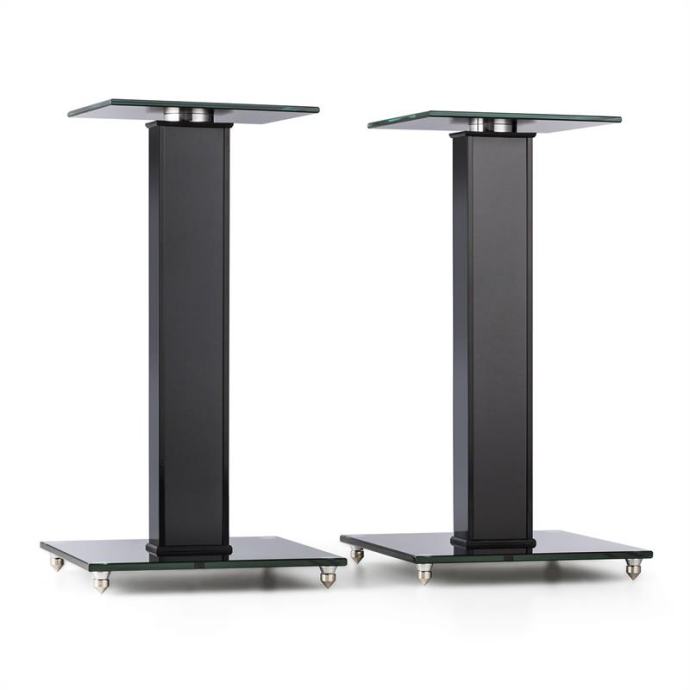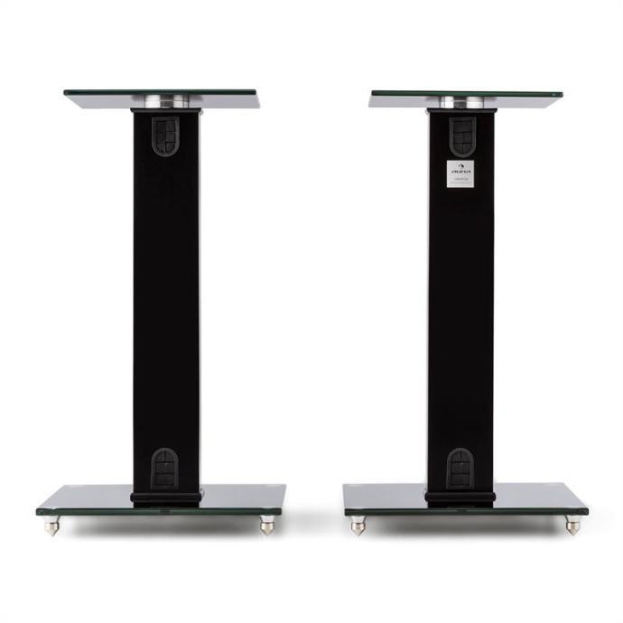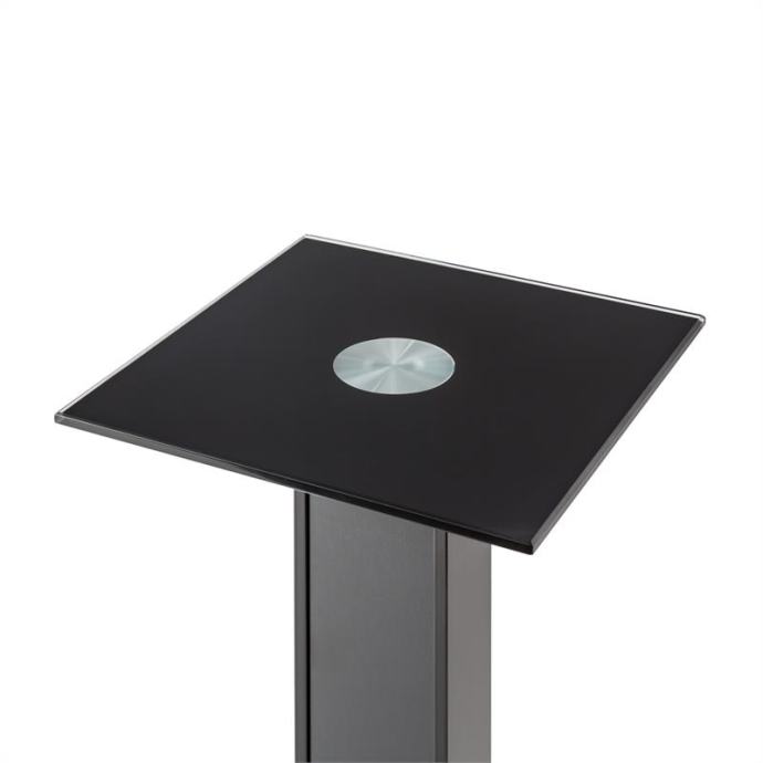Stojala za zvočnike elegantnega dizajna z nosilnostjo max. 10 kg, Okretna plošča 20 x 20 cm iz trdega stekla, Srednji aluminijski stolp z robovi in praktičnim kanalom za kabel, Vključeni seti vijakov za akustično optimizacijo, za ločevanje
