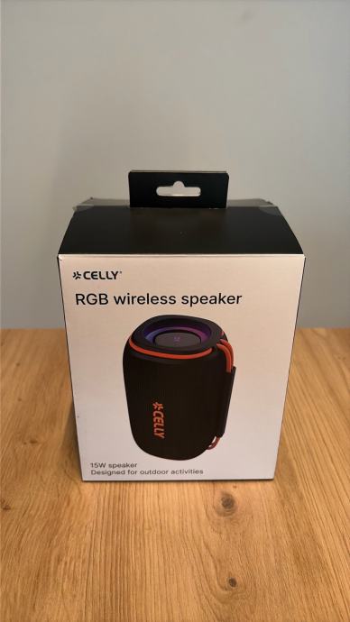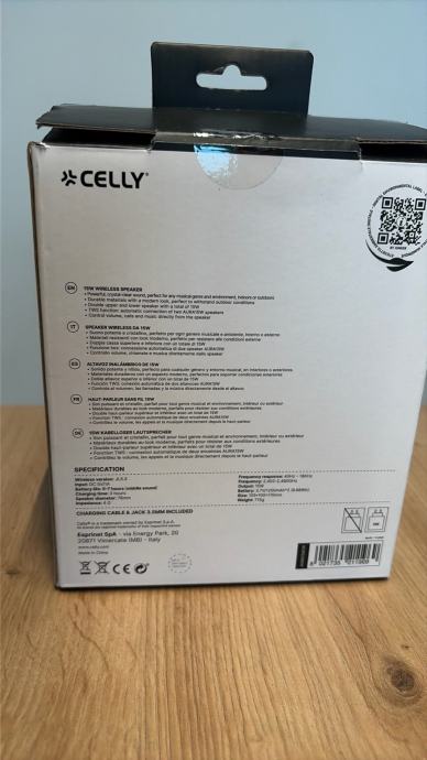 Celly aura 15W bluetooth zvocnik. Tasca zadela na srečelovu. Ne rabimo še enega zvočnika.