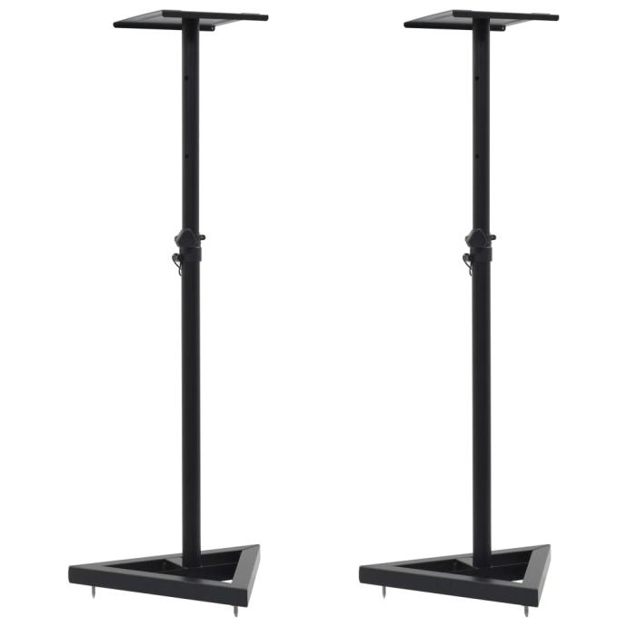 Naš dvodelni komplet stojal za zvočnike je popoln za uporabo s studijskimi zvočniki v projektnih, domačih ali mobilnih studiih. Ta stojala za zvočnike so izdelana iz trpežnega jekla ter imajo stabilno in trdno konstrukcijo. Stojala so zasnovana s stabilno nizkoprofilno podlago trikotne oblike, namestijo pa se lahko v tesna področja. Ta stojala imajo izravnalne talne konice za preproge in gumijaste noge za trda tla. Poleg tega lahko višino vsakega stojala natančno nastavite s pomočjo zaklepnega zatiča. Paket vsebuje 2 stojali za zvočnike.