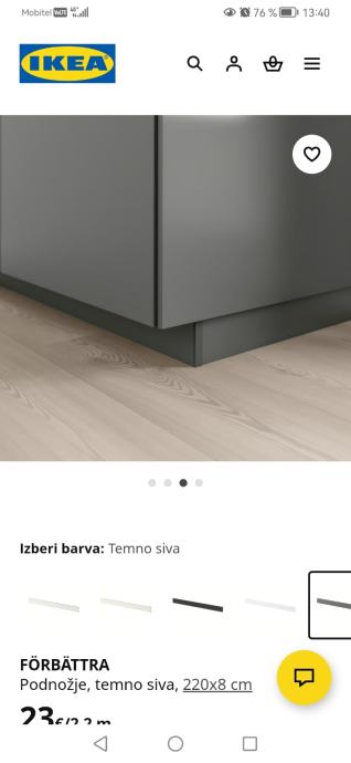 Prodam NOVO kuhinjsko podnožje od Ikee, model Förbättra, temno sive barve. No voljo 20 kos. Prevzem možen v Ljubljani (Moste).