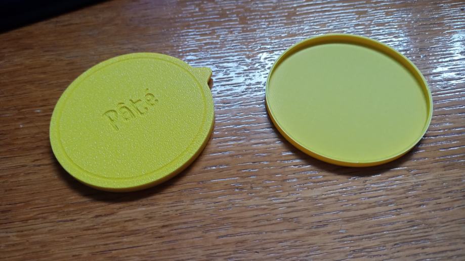 Pokrovček za pašteto (argeta ipd). Na voljo v razlicnih barvah- modra, zelena, rumena, črna, rdeča. Je novo neuporabljeno.