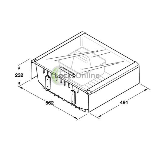 Vstavek dimenzije 562 x 491 x 232 se gradi v vse predale širine 60 cm proizvajalcev Blum, Grass; Herrich globine 500 mm.