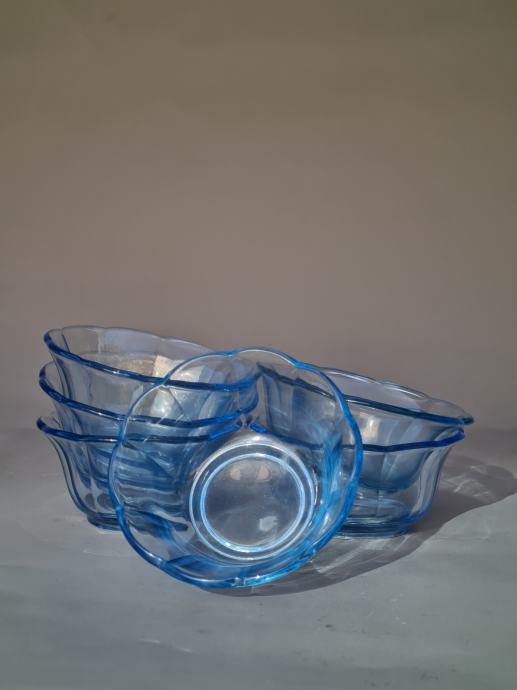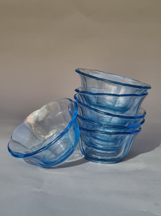 Set 6 modrih steklenih skledic premera 10 cm in višine 5 cm.