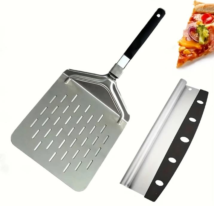 Zložljiv lopar za pico iz nerjavečega jekla (inox) – za hitro, čisto in varno prenašanje pic iz pečice ali kamna.