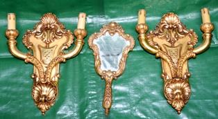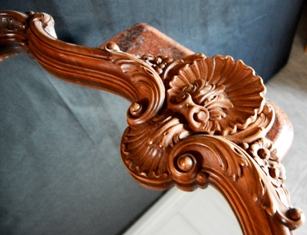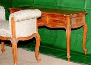 Temnejši kosi so iz mahagonija in korenine oreha, svetlejši iz korenine češnje. Pohištvo je malo rabljeno in skladiščeno zadnjih 25 let.