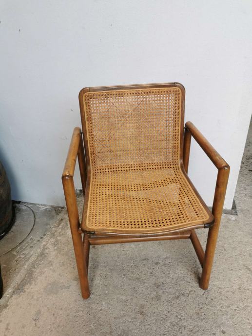 Lepo ohranjen stol Branka Uršič za Stol Kamnik. Bukov les in bambus mrežica.