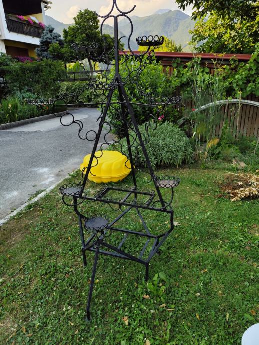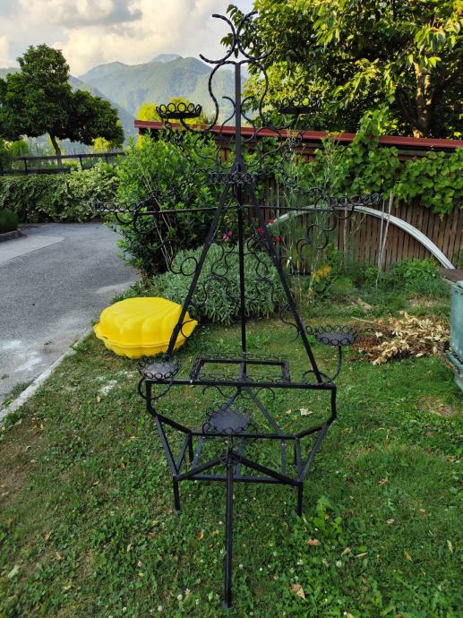 Prodam lepo in stabilno kovinsko stojalo za rože za simbolično ceno. Višina cca 2m in širina stožca cca 1m. Nahaja se v Tolminu.