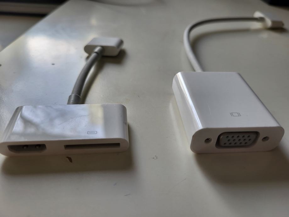 Tole sem potreboval za Ipad, da sem lahko mirne duše hodil predavat. Prvi adapter pretvorba iz Ipada v Hdmi in navadni projektorski adapter. Drugi adapter pretvorba v stari video PC vhod.