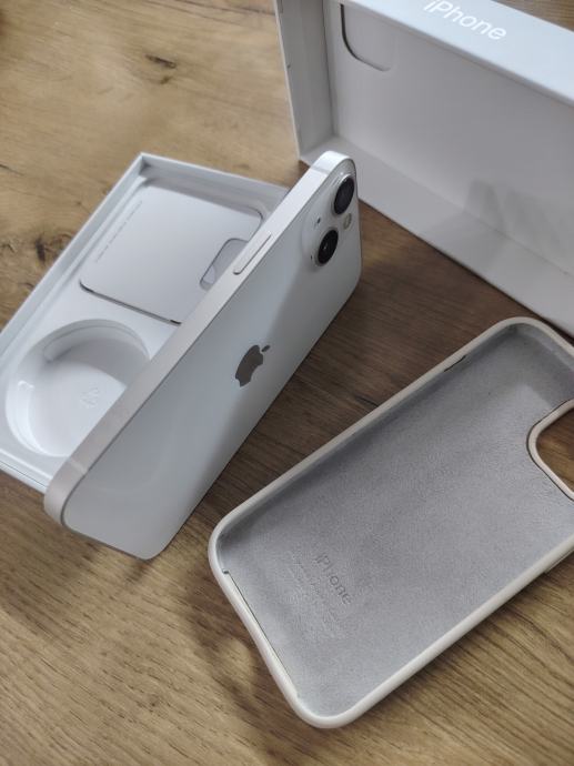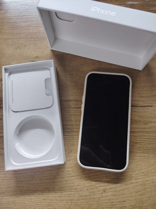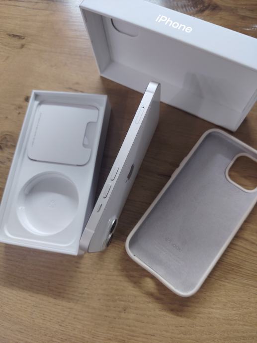 Prodajam odlično ohranjen iPhone 13 v beli barvi z originalno embalažo in dodatki. Telefon je v brezhibnem stanju 10/10 in ima še vedno 88% kapacitete baterije. Priložena je tudi originalna zaščitna torbica Apple.