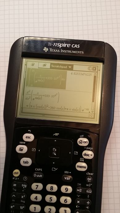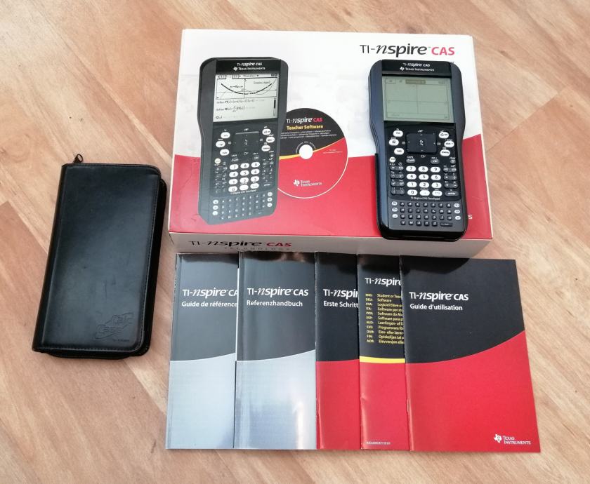 Prodam odlično ohranjen in normalno delujoč kalkulator Texas Instruments Ti-Nspire CAS with Touchpad. Kalkulator je bil uporabljan za namene študija in je odlična izbira za študente tehniških oziroma naravoslovnih smeri (ima solver, računa integrale, diferencialne enačbe, riše grafe...). Touchpad omogoča enostavno premikanje kazalca po grafih in izbiranje pri računanju (deluje enako, kakor touchpad pri prenosnih računalnikih). Ima velik ekran z visoko resolucijo (320 x 240 pixels). Lahko se ga enostavno poveže preko USB kabla na računalnik za prenašanje datotek.