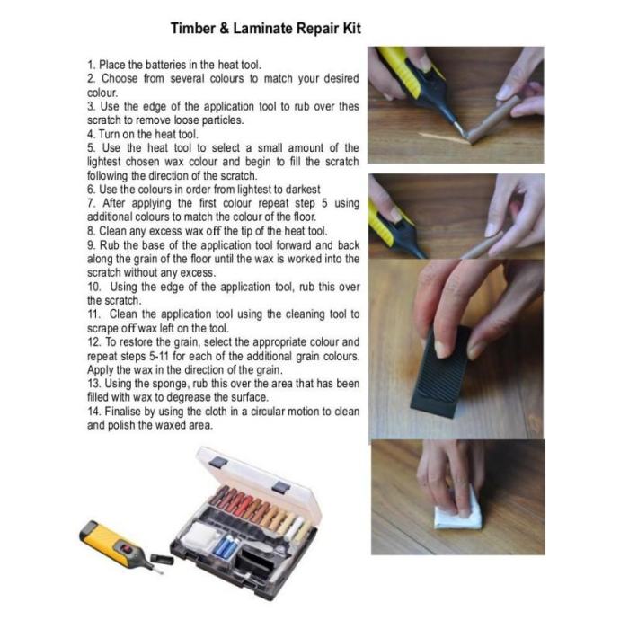 Priporočljivo za popravilo manjših prask na laminatnih površinah, delovnih ploščah, pohištvu, omari, lesu, okenskih okvirjih itd.