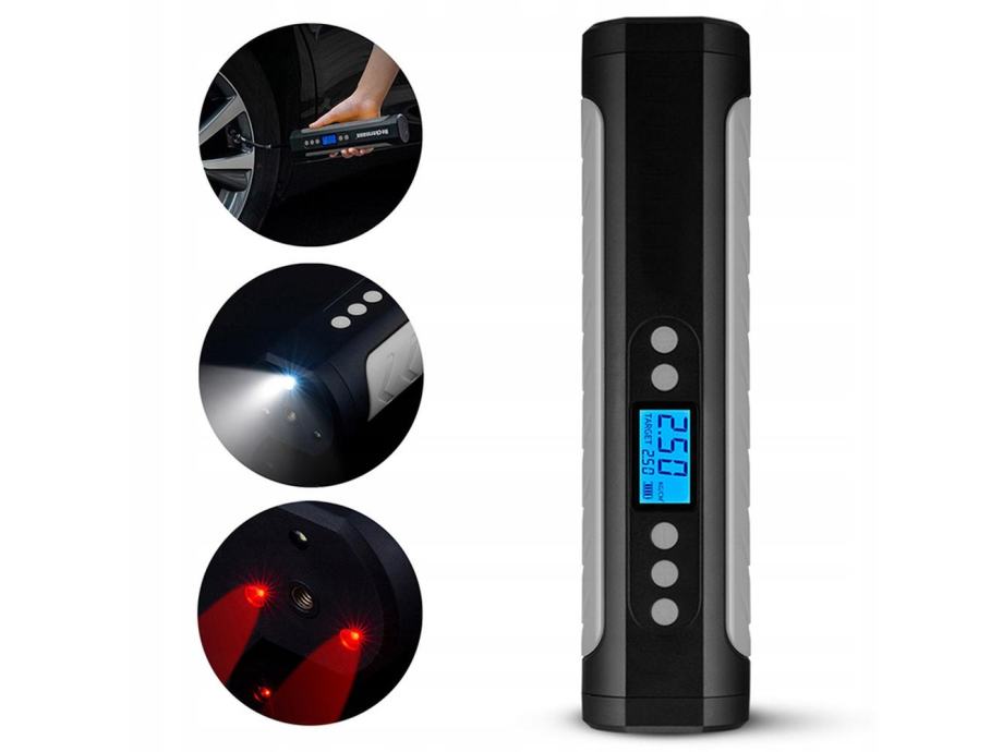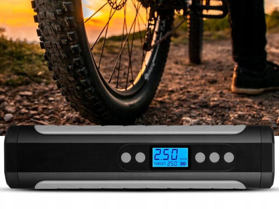 Ne izgubljajte časa z iskanjem bencinskih servisov z razpoložljivimi kompresorji! Naš akumulatorski napihovalnik koles za avtomobile in kolesa vam bo zagotovil udobje in hitrost v vsaki situaciji . Ne glede na to, ali imate opravka s kolesarskimi ali avtomobilskimi pnevmatikami , bo naš napihovalnik poskrbel za vzdrževanje pravilnega tlaka, kar vam bo zagotovilo varno potovanje. Z uporabo gumbov ‘+’ in ‘-‘ bomo nastavili pritisk, ki vam ustreza . Kompresor se bo samodejno izklopil, ko bo dosežen nastavljeni tlak.