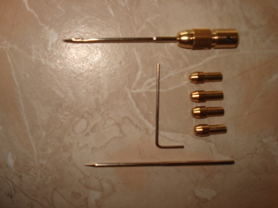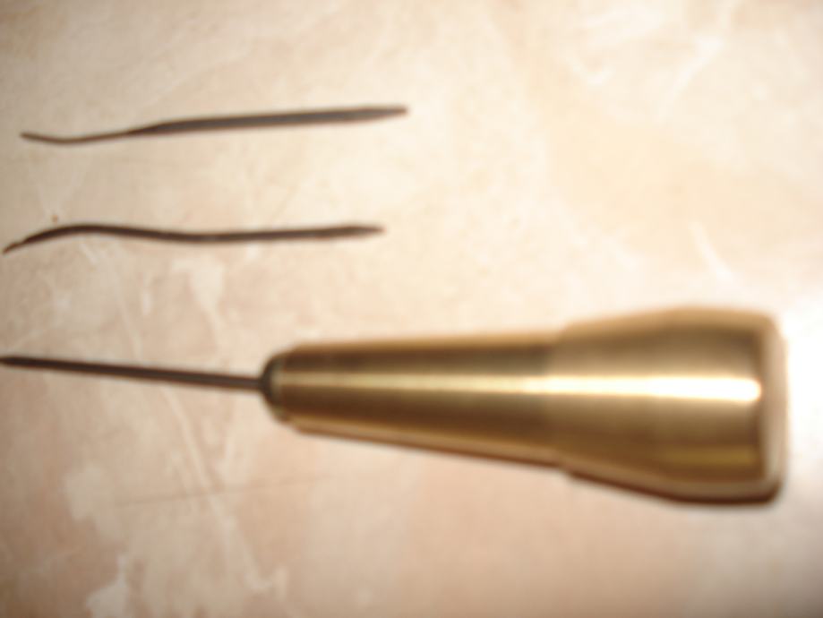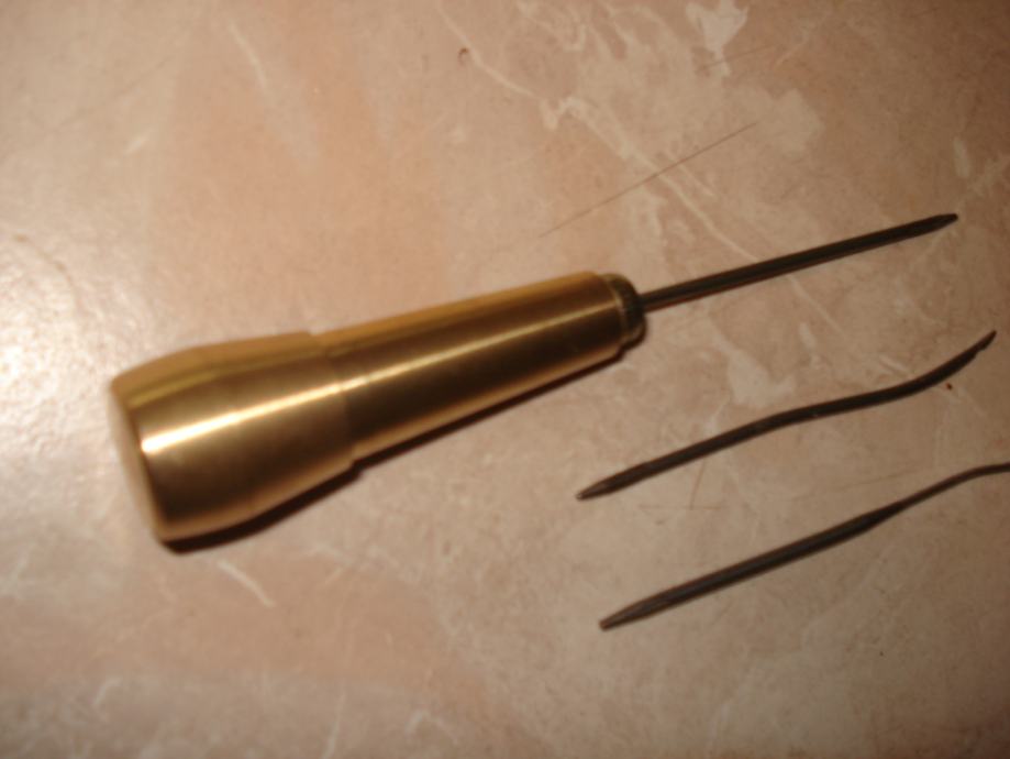 MEDENINASTI ROČAJ Z NAVOJNIM NASTAVKOM IN 4 RAZLIČNIMI IGLAMI,