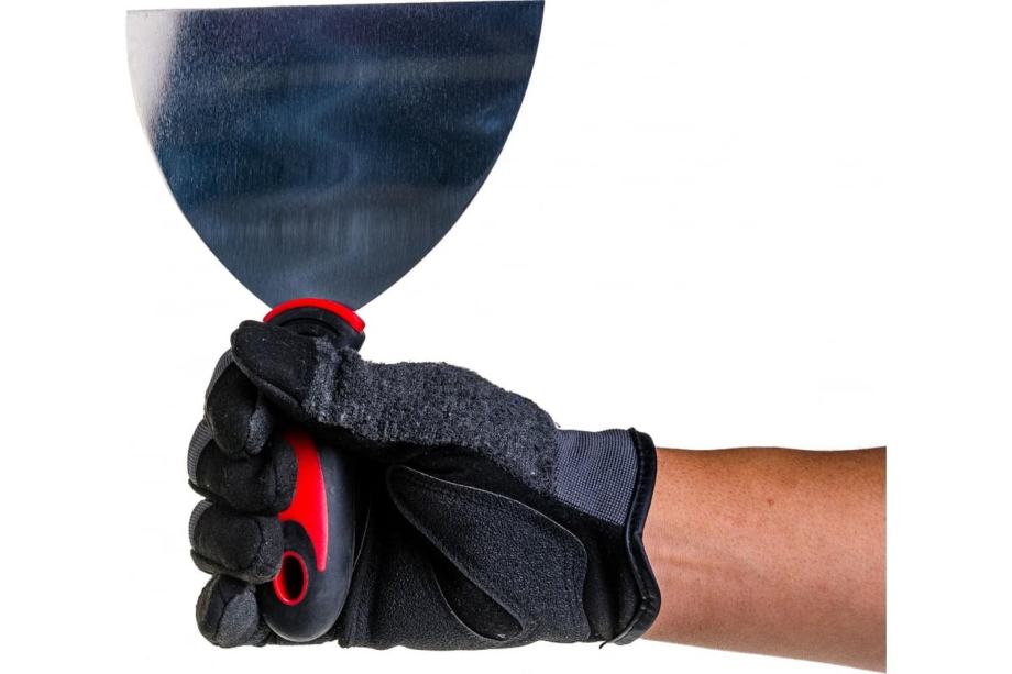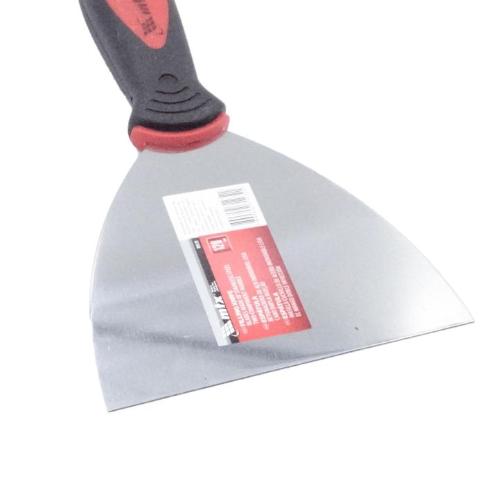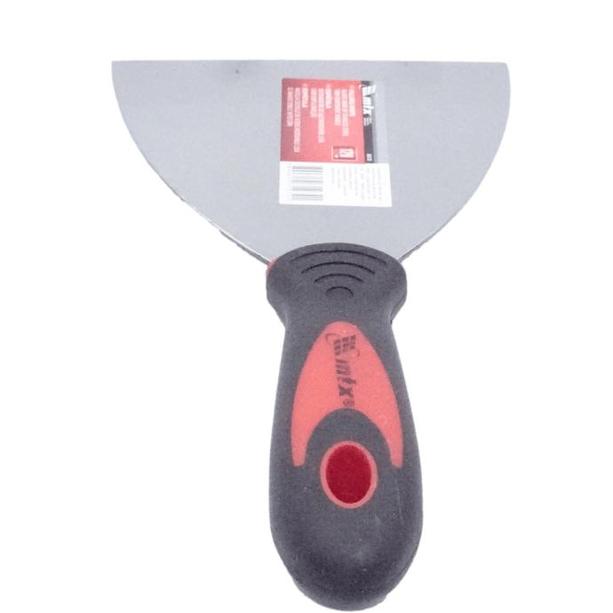 Na področju oprijema je odebeljen dvokomponentni (plastični + gumijasti) ročaj, namenjen enostavnemu nanašanju, izravnavanju in glajenju kita.