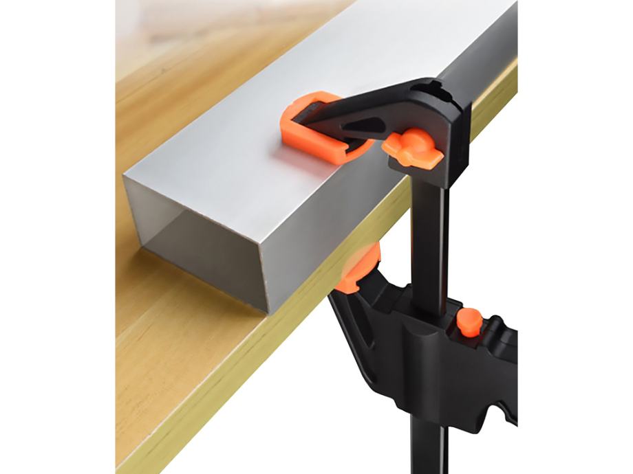 Ena od ključnih prednosti te mizarske sponke je njena hitra in enostavna uporaba. Z eno roko lahko hitro prilagodite spono na želeno dolžino in jo pritrdite na delovno površino. To vam omogoča, da prihranite čas in energijo ter se osredotočite na sam proces mizarjenja.