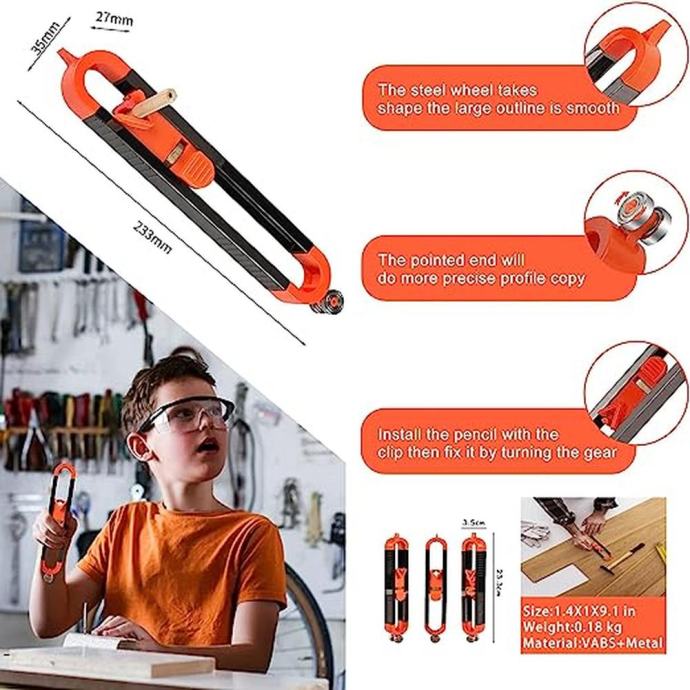 Orodja za merjenje kontur se pogosto uporabljajo za tla, rezanje preprog in obdelavo keramike. Je tudi ustvarjalno darilo za mizarje, tesarje, gradbenike, arhitekte itd., da prihranite čas in izboljšate delovno učinkovitost.
