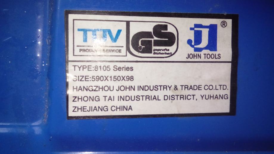 - GS JOHN TOOLS SIZE 590 X 150 X 98 mm , Made in China , dod. inf. na tel. 031 538 622 lep pozdrav Peter
