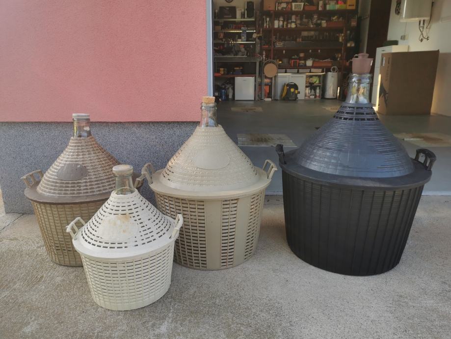 Prodam 10l, 25l, 34l in 54l steklene pletene flaškone.