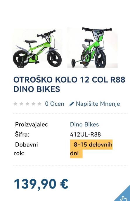 Prodam rabljeno 12 colsko kolo, znamke dino bikes, malo rabljeno.