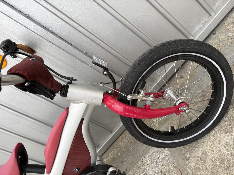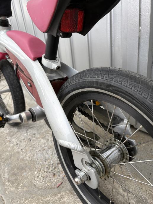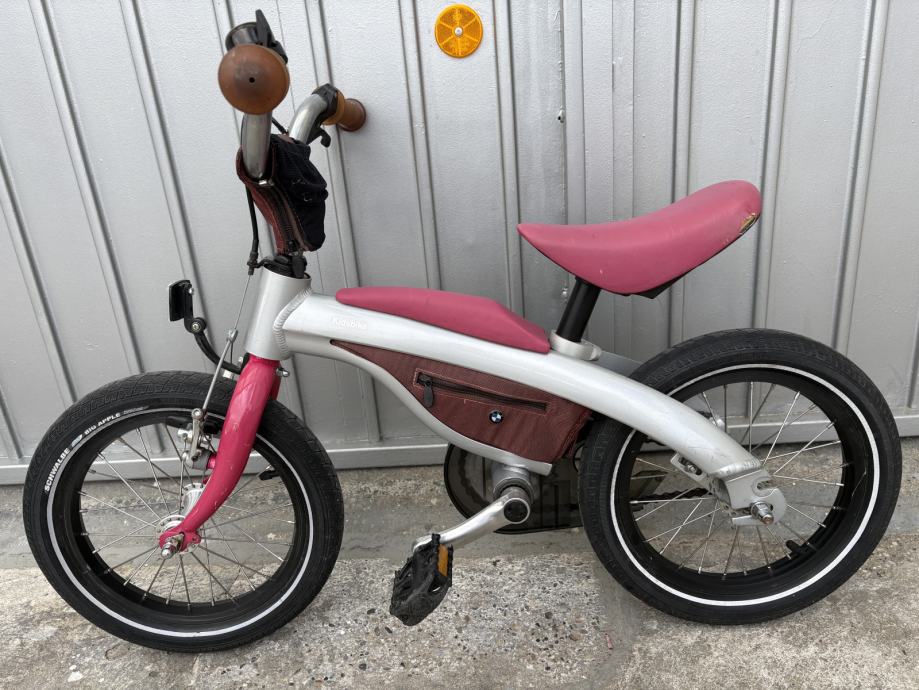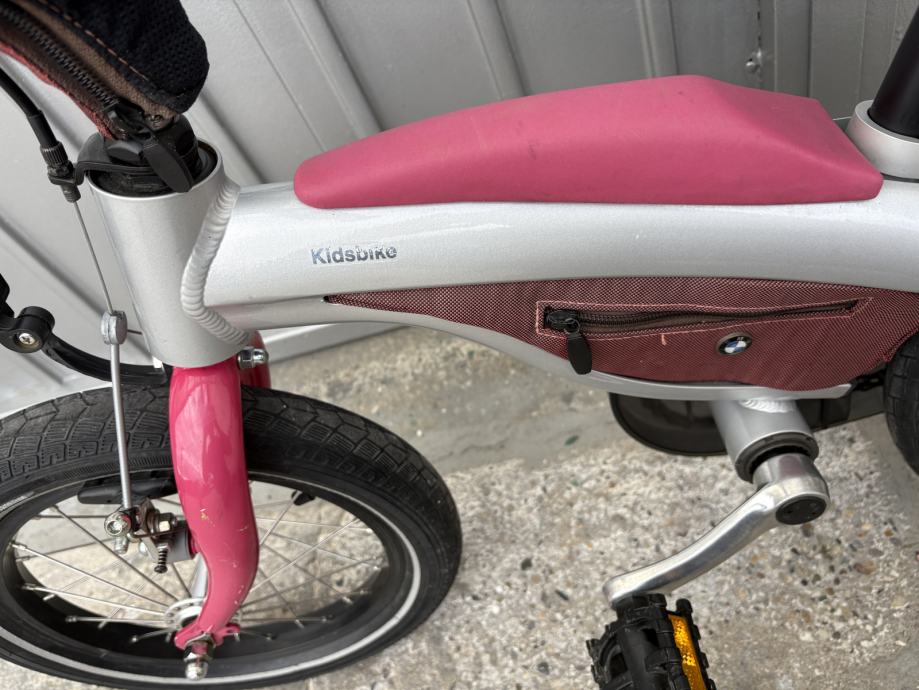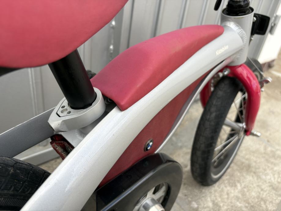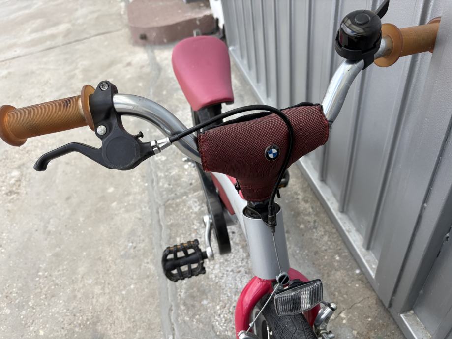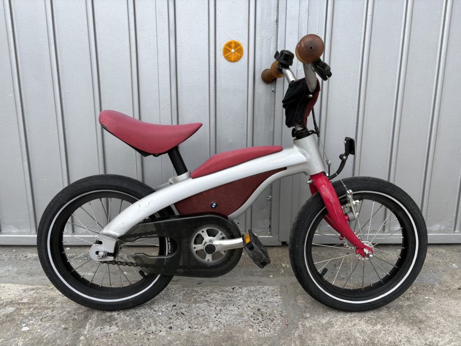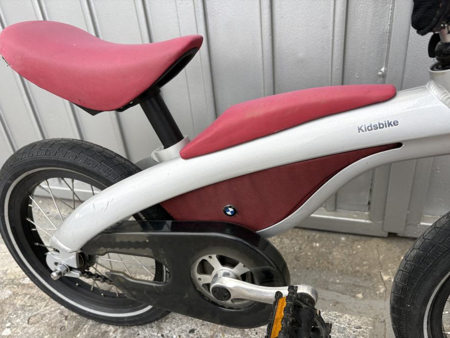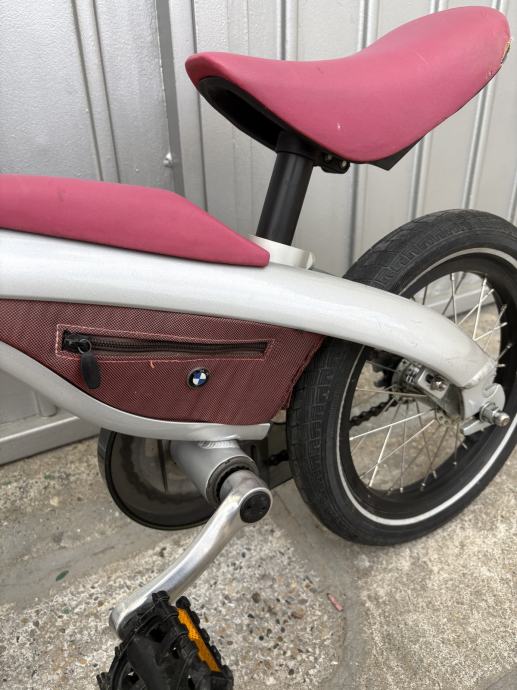original BMW otroško kolo, Kidsbike 14'', vrhunsko otroško kolo z možnostjo odstranitve celotnega pogonskega sklopa (takrat postane poganjalec, potiskalec), aluminijast okvir, sprednja ročna zavora, zadnja nožna zavora (torpedo), kolesa z aluminijastimi platišči in naperami iz nerjavečega jekla, pnevmatike Schwalbe Big Apple z zaščito pred predrtjem