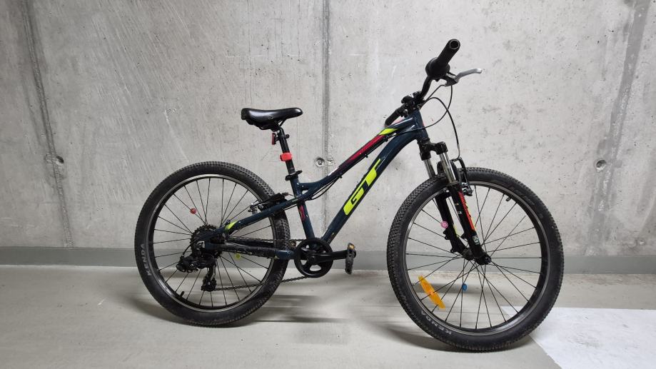 To je GT-jev premium off-road model: lahek aluminij, vzmetena vilica in Shimano prestave, kjer je ena prestava prilagojeno lažja (manj zob) — idealno za vzpone.