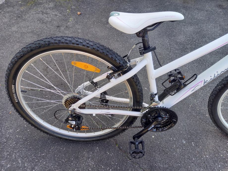 Zelo malo rabljeno, odlično ohranjeno alu mladinsko kolo KILIMANJARO, 27.5 col, kot nov, velikost koles 27.5 col, lahek aluminij okvir(6061), menjalnik 24 prestav Shimano Acera, sprednje vzmetenje, (velikost okvirja S) za osebo od 140-165 cm višine dalje)