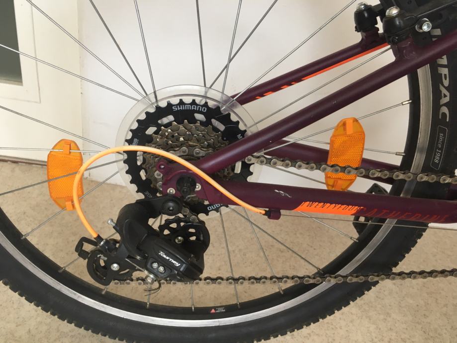 Lahek aluminijast okvir, 7 prestav Shimano, vzmetena vilica, V-zavore, lep design.