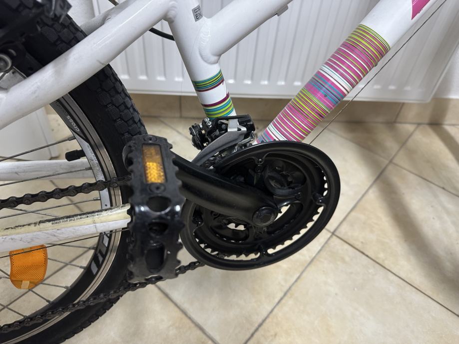 Kolo je tehnično brezhibno – prestave in zavore delujejo pravilno, okvir je raven, gume in obroči so v dobrem stanju. Primerno za vsakodnevno uporabo, vožnjo v šolo ali rekreativne izlete.