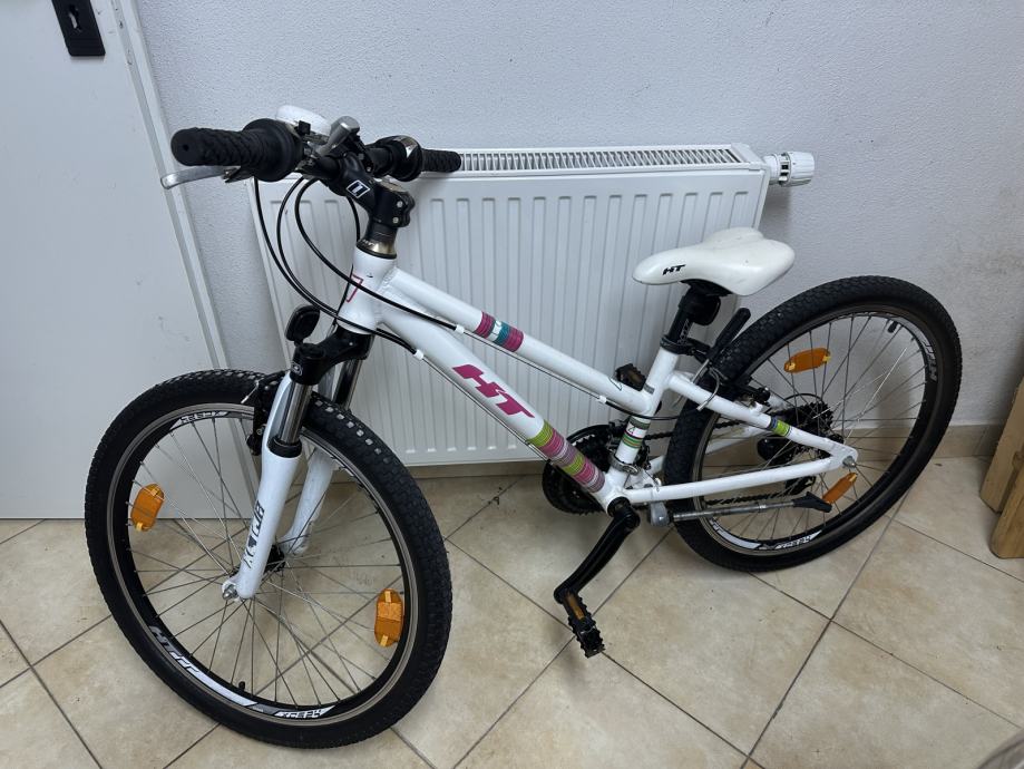 Prodam lepo ohranjeno otroško kolo velikosti 24″, primerno za otroke približno 8–11 let (višina cca 115–145 cm). Kolo ima 18 prestav (Shimano) z RevoShift prestavno ročico, kar omogoča enostavno in zanesljivo prestavljanje. Sprednje vzmetenje poskrbi za udobno vožnjo tudi po slabših podlagah.