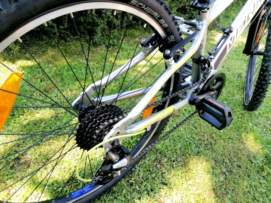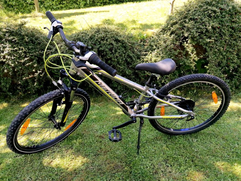 Prodam odlično ohranjeno 4 leta staro otroško kolo velikosti 24 col znamke Merida. Kolo ima 2x8 prestav, prestavne ročke Shimano Grip Shift, zadnji menjalnik Shimano, vilice Suntour in zavore na gumice. Kolo ima novi sedež SMP, nove ročke in zadnje zavorne gumice. Kolo je redno servisirano.