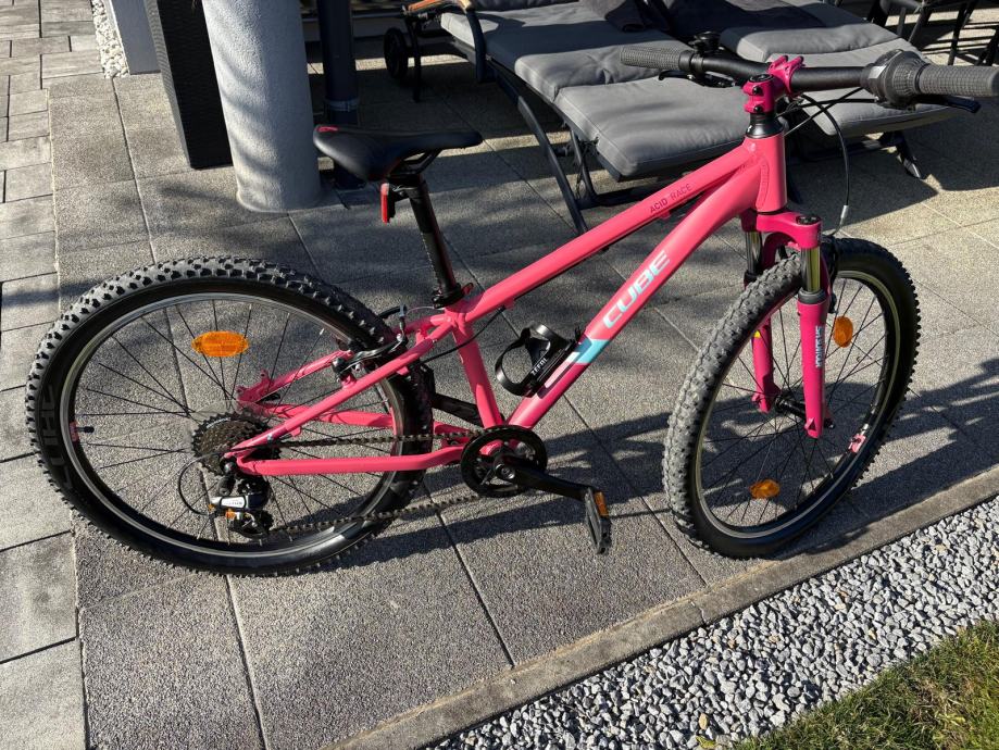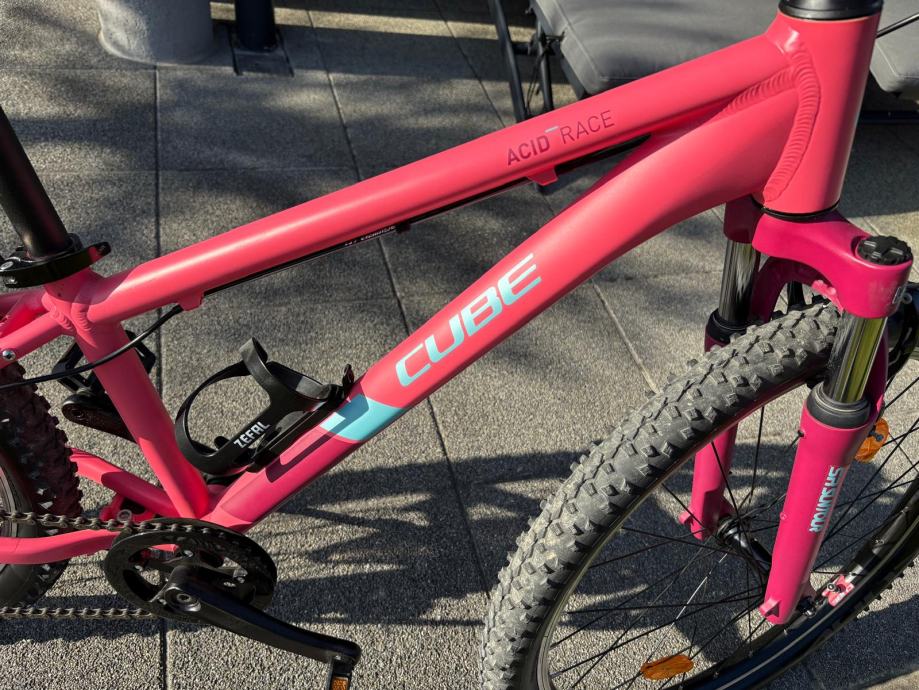 Prodam odlično ohranjeno otroško kolo Cube acid race, 24 col. Shimano zavore, 8 prestav. Dodatno montirana točka za parkiranje kolesa.