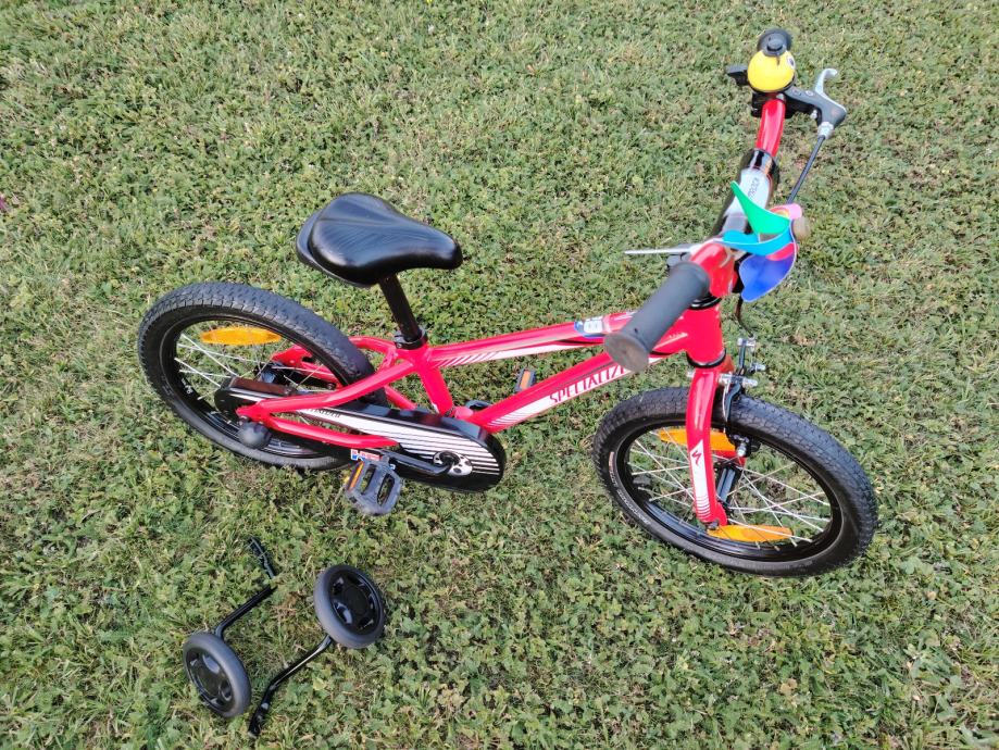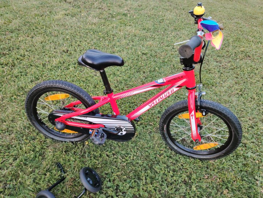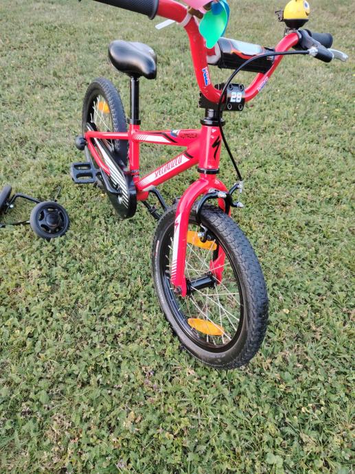 Specialized hotrock 16 col, smo ga uporabljali pri dveh otrocih kateri so iz poganjalca presedli na tega in samostojno zvozili brez pomožnih koles katere priložimo zraven.