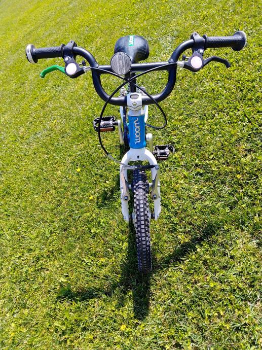 Prodam otroško kolo WOOM 2, modre barve, 14 col. Kolo je lepo ohranjeno in deluje brezhibno.