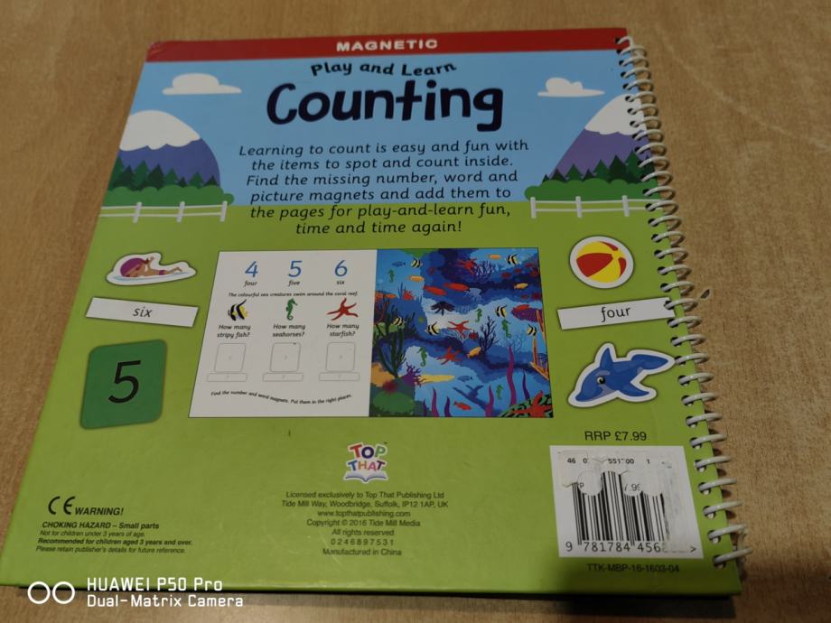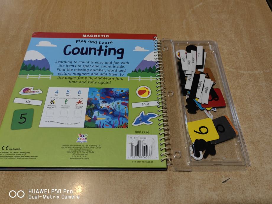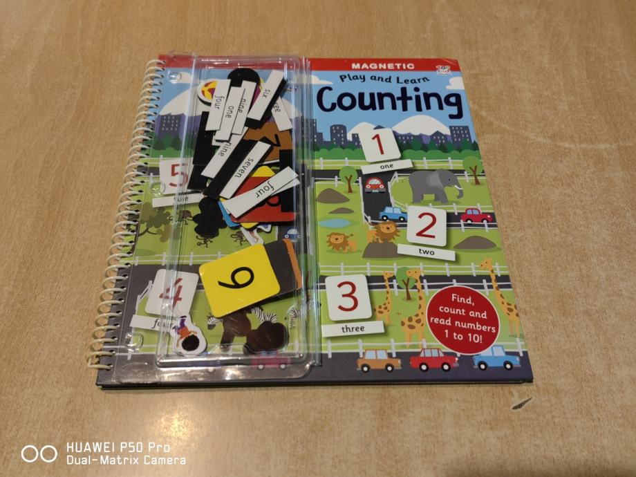 Counting by Susie Linn. This counting book with magnets is for children aged 3 and over, and designed for parent-child sharing. It contains five colourful , play and learn counting