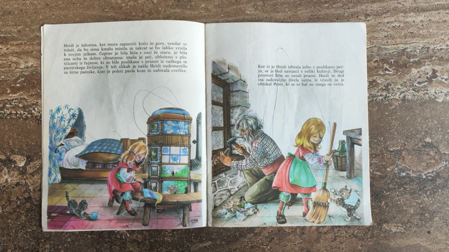 Prodam srednje ohranjeno knjigo Heidi v vasici, Jugoreklam, 1981. Knjiga je ohranjena, le na dveh notranjih straneh je rahlo počečkana s kulijem, kar je prikazano na fotografiji.