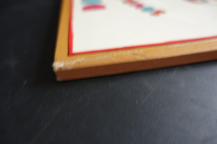 Notranjost lepo ohranjena, zunaj poškodba na levem spodnjem in zgornjem vogalu.