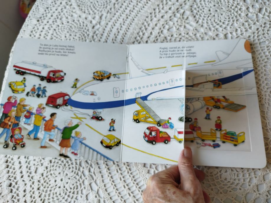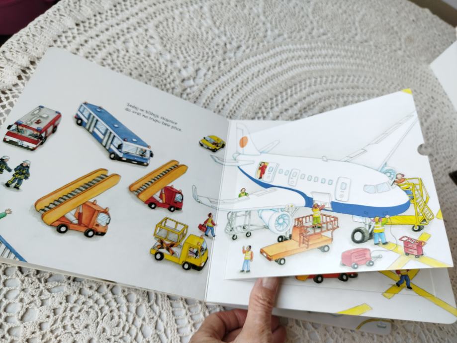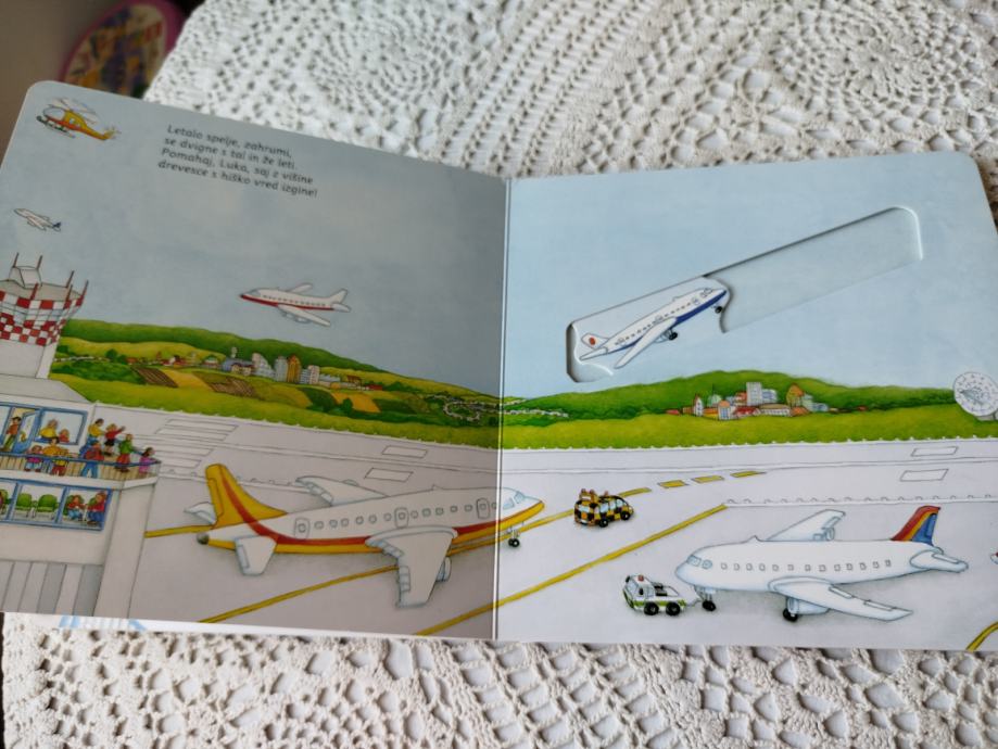 Knjiga-kartonka z okenčki in krmilom Potujem z letalom